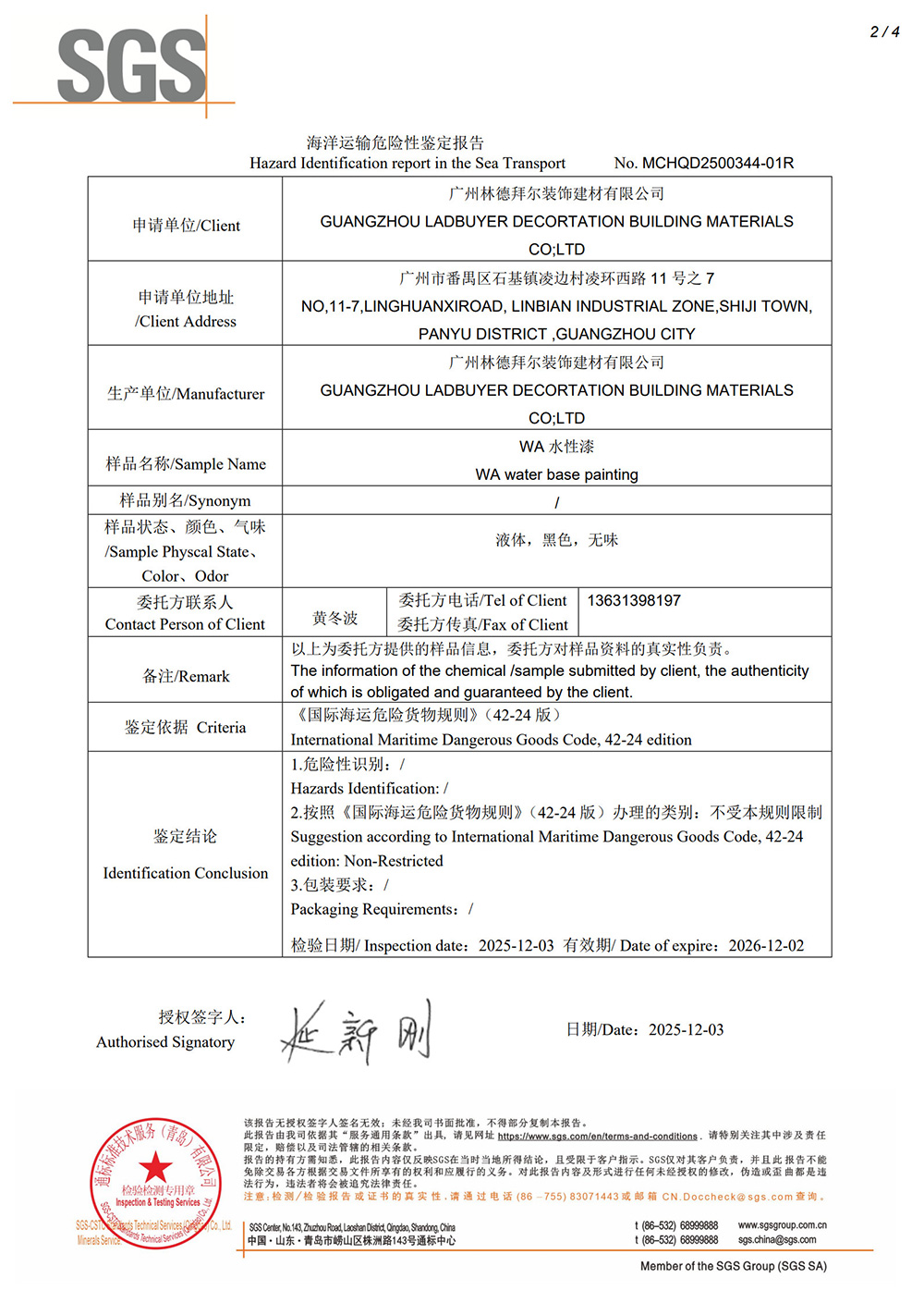 海洋运输危险性鉴定报告